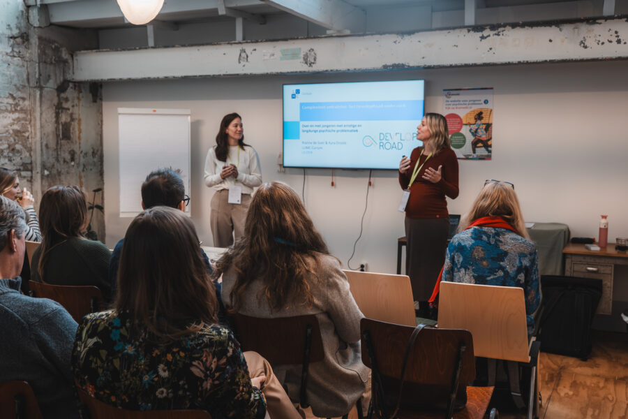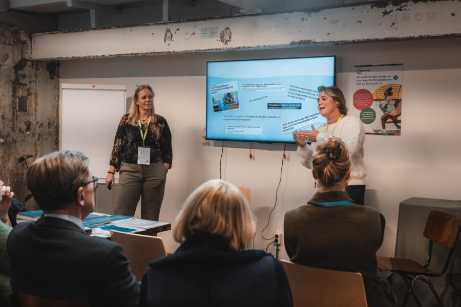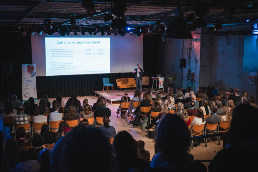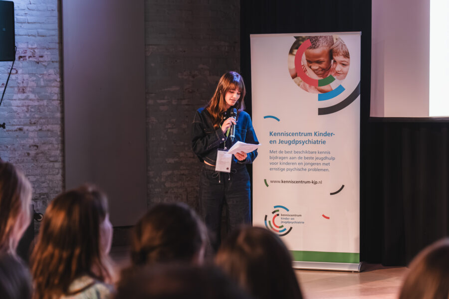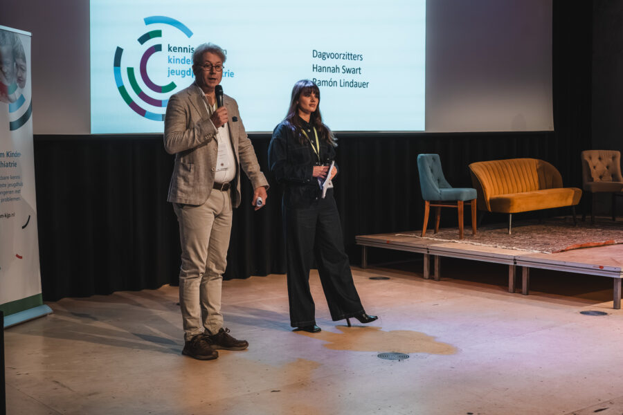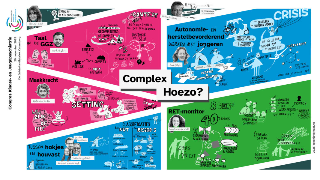 Terugblik Jaarcongres Kinder- en Jeugdpsychiatrie 2025: Complex – hoezo?1 december 2025 In de jeugd-ggz hebben we dagelijks te maken met situaties die als complex worden bestempeld. Maar wat bedoelen we daar precies mee? Wanneer noemen we iets ‘complex’, en wat zegt dat over hoe we naar problemen en samenwerkingen kijken? Tijdens dit congres stonden we stil bij hoe we omgaan met complexiteit – in casuïstiek, in systemen en in samenwerking met elkaar. Het was een inspirerende middag met verrassende perspectieven op complexiteit. Hieronder genieten we nog even na met een visuele en inhoudelijke terugblik. Graag tot volgend jaar! Plenaire lezingen Taal in de ggz – Derek Strijbos We spreken tegenwoordig vaak over ‘complexe’ problematiek in de ggz. Maar wat bedoelen we daar nu precies mee? De term lijkt aan inflatie onderhevig, waardoor het steeds onduidelijker wordt wat we proberen uit te drukken als we een probleem aanduiden als ‘complex’. Derek stond stil bij de oorsprong van het complexiteitsbegrip in de filosofie en de dynamische systeemtheorie. Vervolgens maakte hij de vertaalslag naar de hedendaagse praktijk. Bekijk hier de presentatie van Derek Maakkracht – Jetske van Oosten In een tijd van grote maatschappelijke problemen voelen we ons vaak machteloos. Hoe graag we ons ook willen inzetten voor een betere samenleving, onze huidige manier van problemen oplossen blijkt niet toereikend. Waarom lukt het niet om dat wat we belangrijk en goed vinden, centraal te stellen in de manier waarop we de samenleving vormgeven? Wat we nodig hebben is een heel andere denk- en werkwijze: die van kunstenaars en ontwerpers. Als we de grote problemen van deze tijd gaan zien als ontwerpopgaven, kunnen we het bestaande systeem radicaal veranderen. Bekijk hier de presentatie van Jetske RET-monitor: wat werkt en hoe leren we daarvan? – Sarah van der Weele De landelijke RET-monitor kan met de vergaarde data een grote rol spelen in het zelflerende aspect van het decentraliseerde stelsel. Er waren veel vragen uit het publiek over hoe we de expertise van ouders, jongeren en behandelaars het beste kunnen benutten, en de rol van de RETs daarin. “RET is echt voor doorbraak, anders werken, nu of nooit.” Bekijk hier de presentatie van Sarah Workshops Genderdiversiteit bij jongeren – Hannah Swart en ervaringsdeskundige Tessie Wijhers Tijdens deze workshop deelde Tessie in een interview met Hannah Swart zijn ervaringsverhaal over genderdiversiteit in combinatie met psychische problematiek. Ook was er ruimte om vragen aan Tessie te stellen. “Trans zijn is fluïde. Mensen denken dat je in transitie gaat van man naar vrouw of andersom. Maar de hokjes gaan weg. Ik mag mij Tessie voelen, maar mag mij ook mannelijk voelen.” DevelopRoad onderzoek – Rianne de Soet en Kyra Droste Het DevelopRoad onderzoek gaat over jongeren waarbij behandeling niet succesvol is geweest. Ze worden vaak als ‘te complex’ gezien. Diverse onderzoeken binnen DevelopRoad laten zien dat we af moeten van de neiging om de complexiteit bij de jongere te leggen. Laten we meer kijken naar bevorderende en belemmerende factoren van een behandeling, binnen de sociale, maatschappelijke en andere contexten waarin de jongere leeft. Tijdens de workshop hielden we een interactieve werkvorm: ‘Dilemma: autonomie vs veiligheid.’ In kleine groepjes beantwoordden we kernvragen over autonomie en veiligheid, ieder vanuit het toegewezen perspectief van jongeren, ouders of professionals. De oefening ging over het spanningsveld waar je mee te maken krijgt tussen deze verschillende perspectieven waarbij de jongere zich opgesloten voelt en behandelaren zich verantwoordelijk voelen om de veiligheid (tijdelijk) voorrang te geven boven autonomie van de jongere en de wens van ouders hierin. Tussen hokjes en houvast: Classificeren in de jeugd-ggz – Kirsten Hoogerheide & Rosanne van der Jagt Wel of niet classificeren; hoe maak je een goede afweging? Professionals hebben vaak met dit dilemma te maken. Vooral als je werkt met kinderen en jongeren die nog in ontwikkeling zijn. Om deze afweging goed te kunnen maken, heb je kennis nodig over het nut en de risico’s van classificaties. In deze workshop leerden we hier meer over. Ook gingen we aan de hand van de ‘Handreiking classificatie in de praktijk’ van de Nederlandse Vereniging voor Psychiatrie (NVvP) in debat over de keuze wel of niet classificeren in verschillende casussen. Tijdens de interactieve workshop werden stellingen voorgelegd, waarna de deelnemers kozen voor ‘voor’ of ‘tegen’. Na deze keuze werd de discussie geopend. “Soms zijn classificaties verkeerd en is er een onderliggend probleem. Bijvoorbeeld bij een kind met weinig taalvaardigheid: de diagnose autisme wordt gesteld, maar eigenlijk was het vooral een taalbarrière.” Lichaamsgericht werken bij complexe vraagstukken – Fieke Klein Wassink We bespraken hoe je de principes van lichaamsgericht werken kunt inzetten bij complexe problematiek in de jeugdhulp. Hierbij benoem je de lichaamstaal van een jeugdige zonder te interpreteren, bijvoorbeeld: “Ik zie dat je je schouders optrekt wanneer je het over je moeder hebt”. Daarna oefenden we in duo’s met het observeren van iemands lichaamstaal tijdens een verhaal over een stressvol moment. Vervolgens deden we een oefening over wat veilig voelt. Fieke legde uit: “Zorgverleners zijn per definitie onveilig. Je vraagt een kind namelijk om naar een vreemde plek te komen, waar het moet praten met een vreemde.” De oefening bestond uit het vormen van een veilige cirkel op de grond. Iemand nam plaats in de cirkel en vertelde de rest waar ze konden staan of zitten zodat het veilig voelde. Daarna experimenteerden we: wat gebeurt er als iemand ergens anders gaat staan? Wat doet dat met jou? En helpt het als diegene aankondigt wat hij of zij gaat doen? “Lichaamsgericht werken gaat over hoe je het klein kan houden bij complexe problematiek.” Complexe casuïstiek door